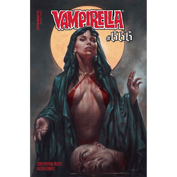 Vampirella experiences a literal new beginning with a renumbering to reflect her six decades of publishing! Vampirella is murdered by a mysterious blonde woman who looks exactly like her, only to awaken surrounded by her husband, friends, and pseudo-superhero mom Lilith. All seems normal and right with the world except for her nagging suspicion that none of it actually is. Here Vampirella inexplicably finds herself back in the first days of Priest and Ergün Gündüz's landmark 50th Anniversary run where the dead are alive, Vampi's wickedly self-absorbed mom is practically a Power Ranger, and the mass casualty event which defined the series has been averted. But who is the blonde stranger and why is she murdering Vampi over and over again? Strap in for our weirdest yarn yet as 'Beyond' takes our favorite space vampire into a whole new world, one she herself accidentally created!